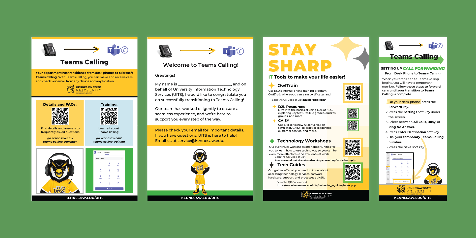 I created an array of print and digital media for KSU as the university transitioned its entire faculty and staff from traditional desk phones to Microsoft Teams calling throughout 2025.