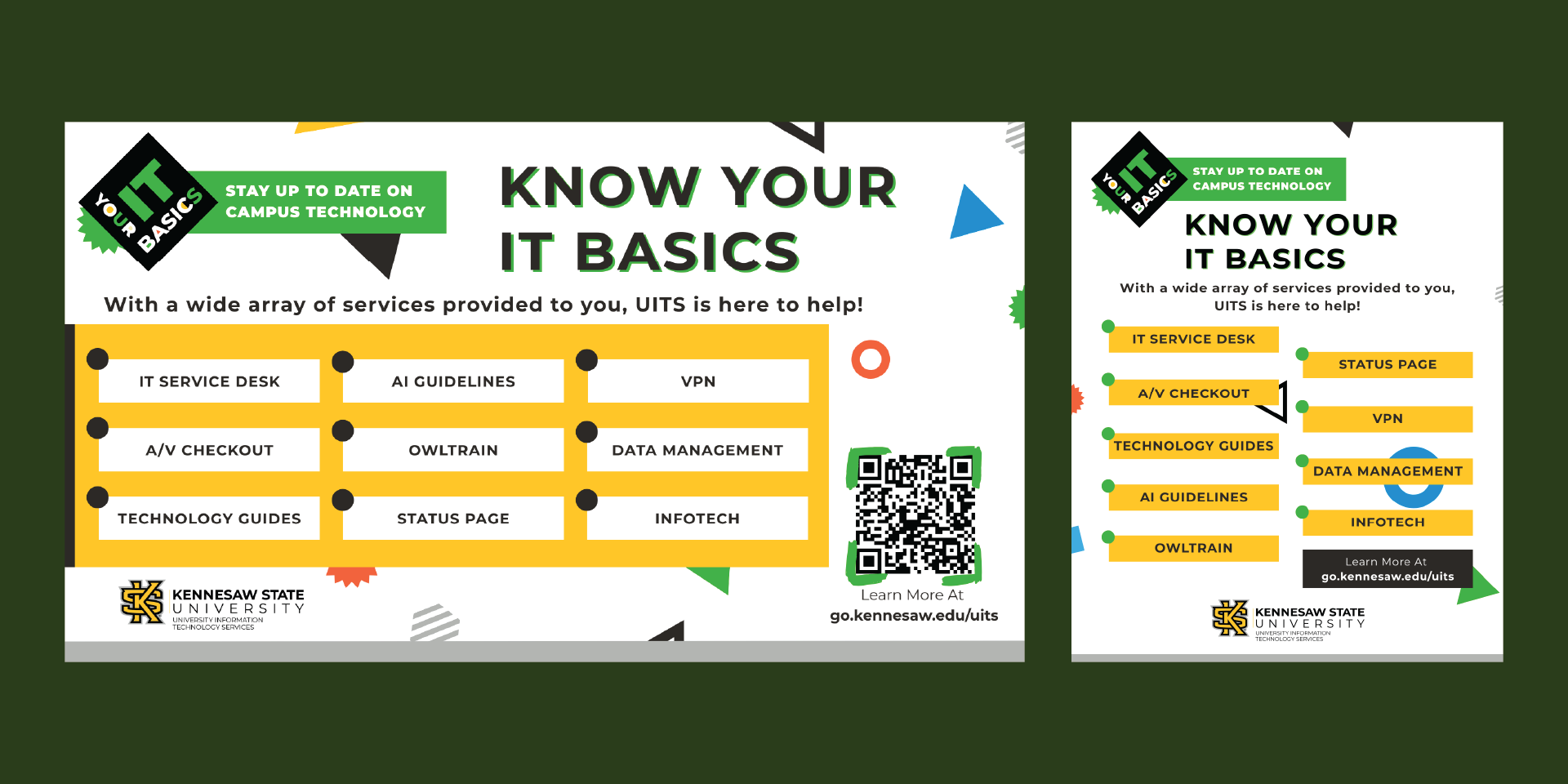 I've had the opportunity to work as an IT Communications apprentice, collaborating with University information technology service staff to create a variety of digital and print materials, blending KSU’s signature colors with departmental branding.
